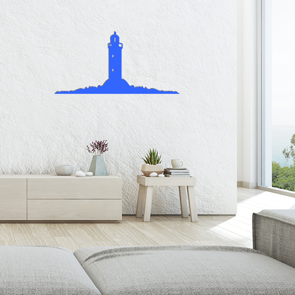 Ce grand phare décoratif est une décoration murale en métal qui se fixe au mur de votre maison de bord de mer.